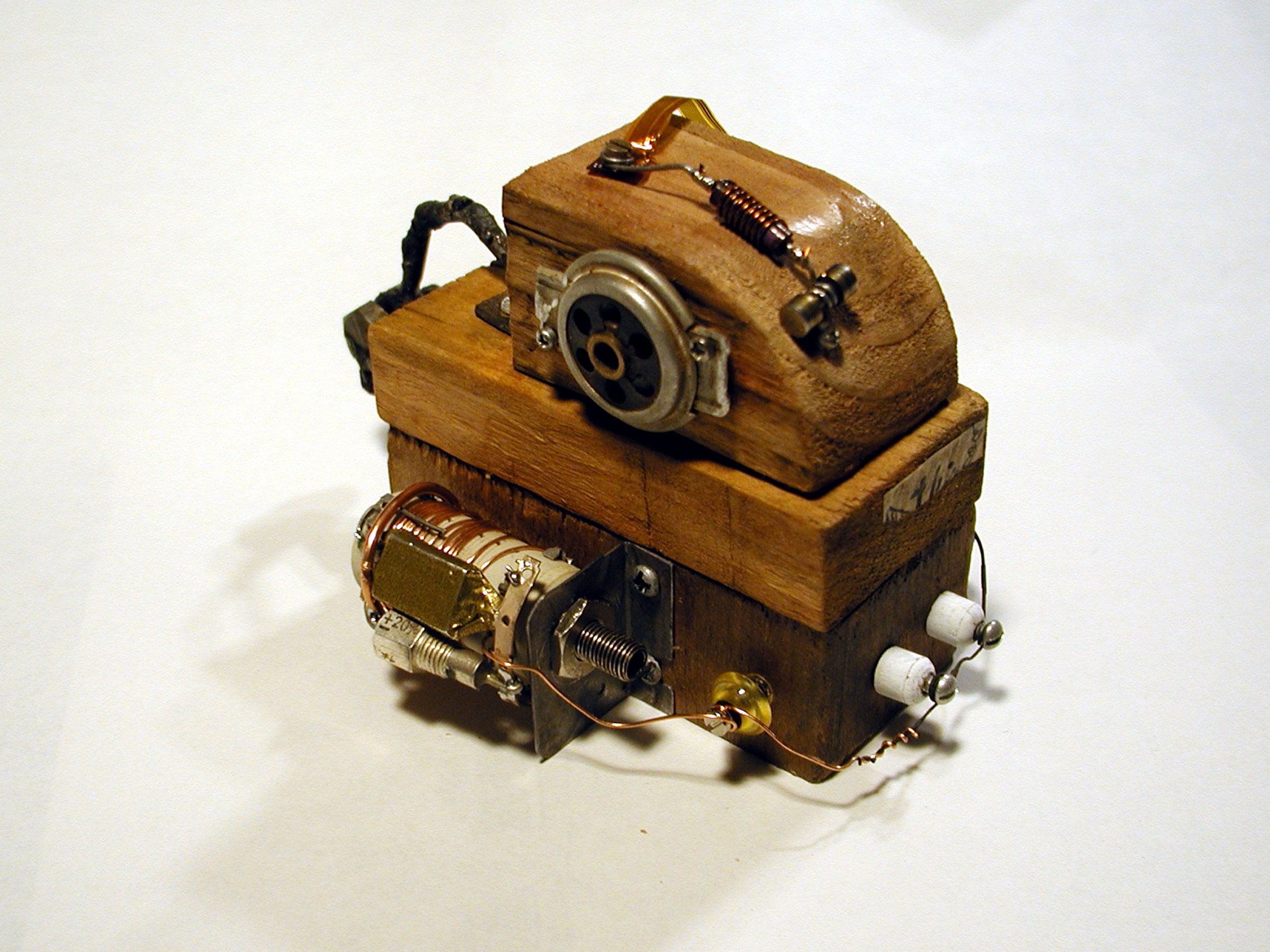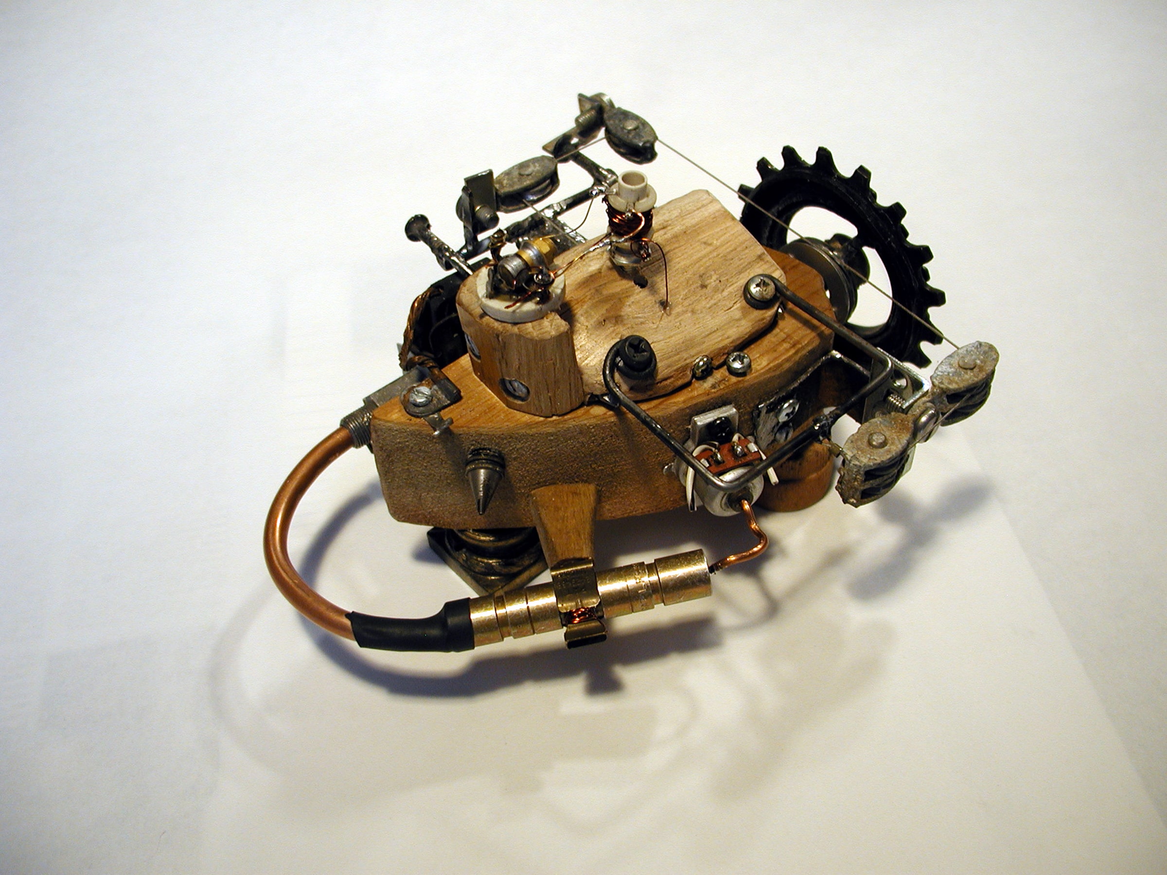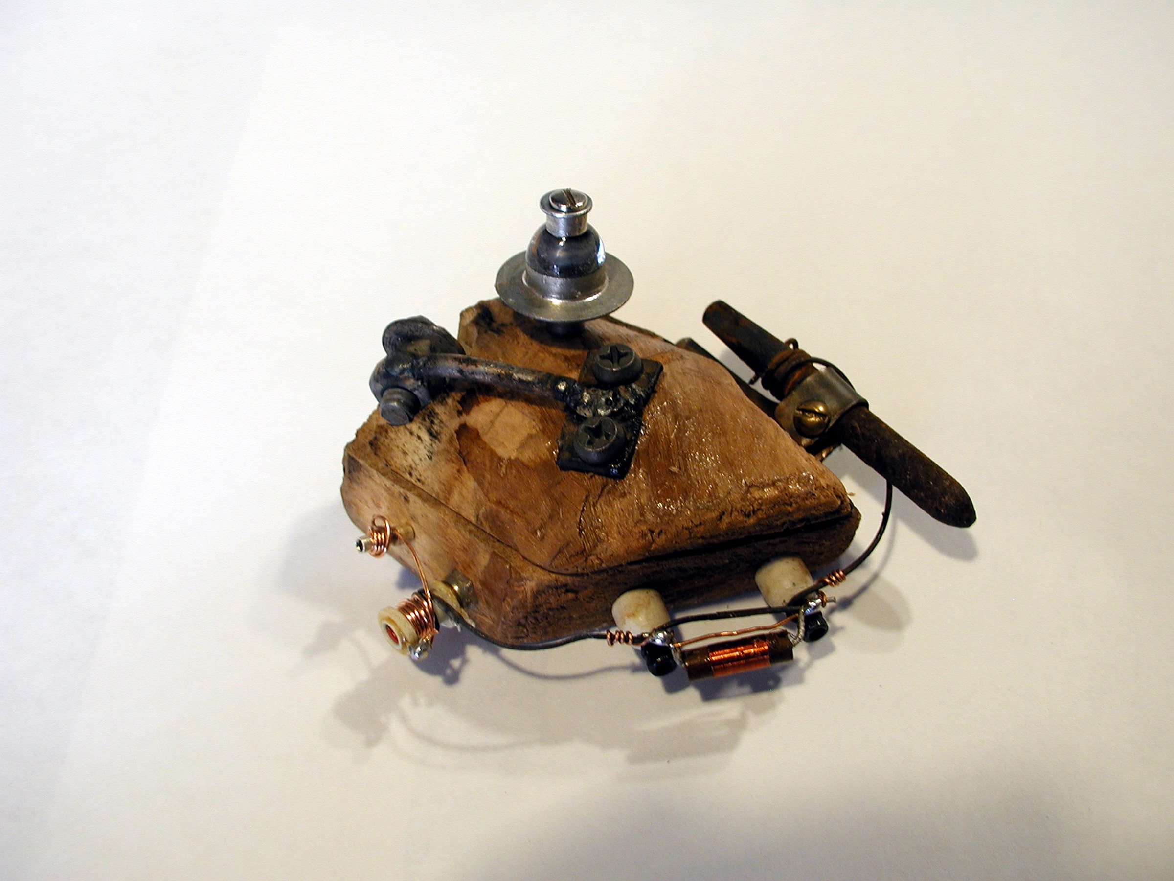 These boxes reflect my wonder about distressed materials that I have combined to make mysterious, crudely hand-made, aged looking containers that look as if they might have come from a Victorian era inventor. I have made them from scrap wood, rusted, re-shaped scrap metal and repurposed mechanical parts. They should be handled carefully as I’ve deliberately made them to my own aesthetic of edginess, rough edges or pointed parts. My boxes are made for adults as art works that have a slightly functional use. They might be used as a container to hold small items should the collector wish to do so.
